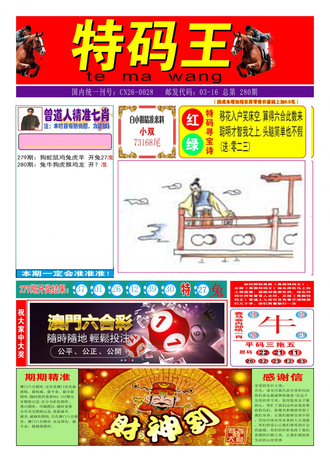 277期: | 牛猪虎马 | 开:虎16 |